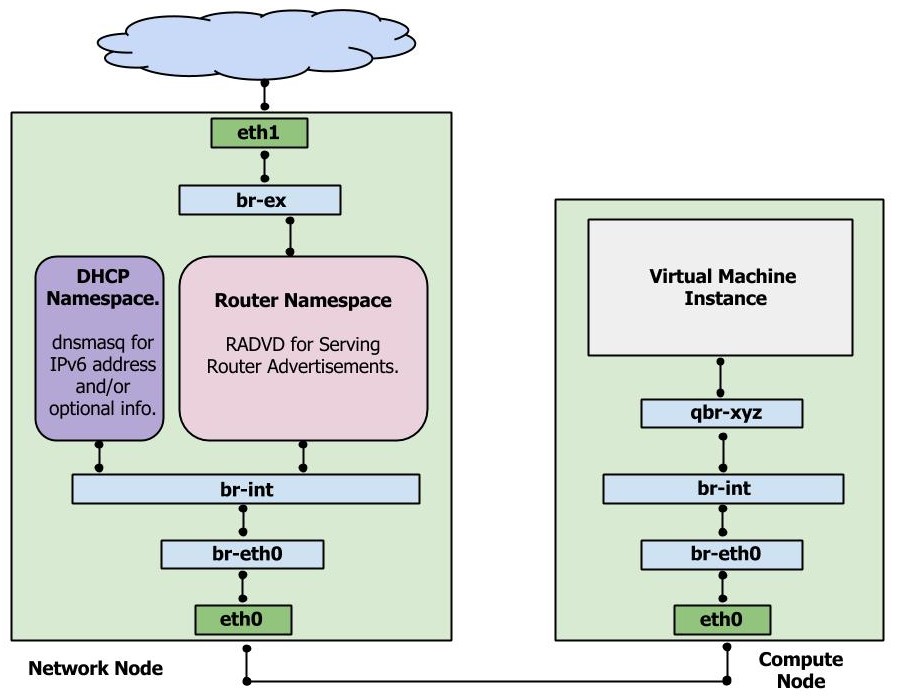 - In an IPv6 SLAAC network, clients would configure the default gateway to the IP address of the NIC serving RA. Currently DNSMASQ runs in a separate dhcp namespace. So, to address the default gateway use-case, we have to either run another instance of DNSMASQ in the router namespace or change the existing behavior of Neutron to run the DNSMASQ in the router namespace instead of dhcp namespace. This could have implications for IPv4 use-cases as there could be some valid reasons behind running DNSMASQ in a separate dhcp namespace.