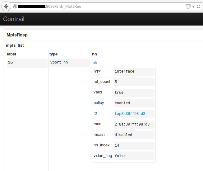 - MplsReq, http://<vrouter agent ip>:8085/Snh_MplsReqWhich gives all the association MPLS Label/NextHop for the given vRouter