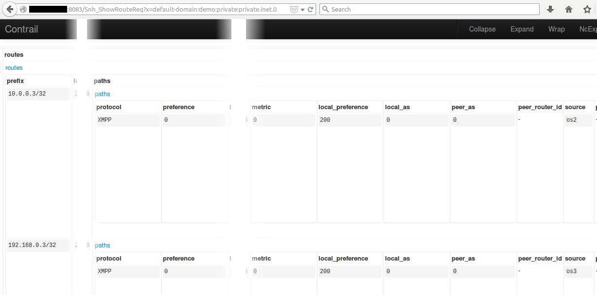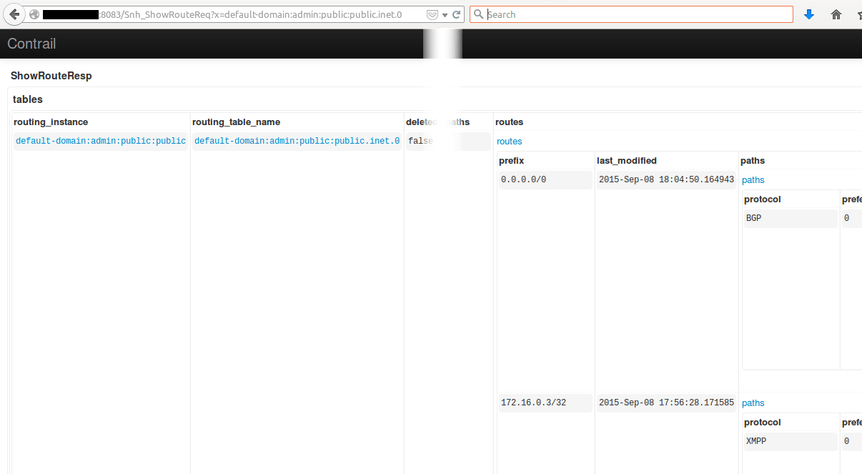 As usual OpenContrail gives you all the informations about the XMPP exchanges, thanks to the introspect interfaces. Below extracts (formatted) from the introspect interfaces when booting a VM.
