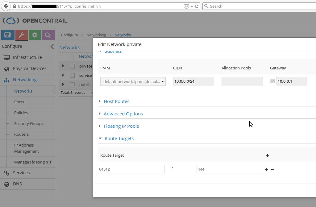 | private | target:64512:8000001 target:64512:8000003 (logical-router) |